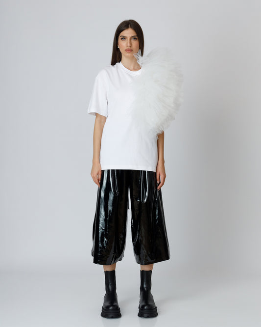 Tricou Alb Oversized Cu Aplicație Din Tulle