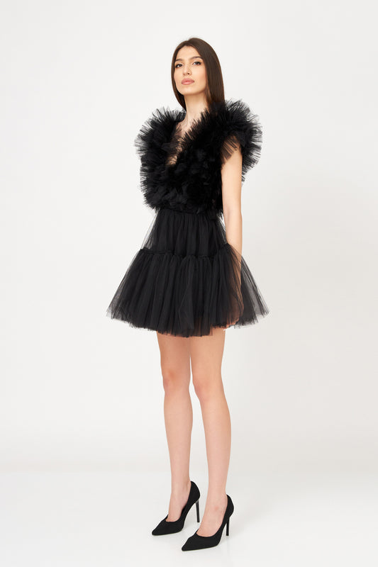 Rochie Mini Cu Volane Stratificate Din Tulle