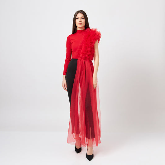 Body Rosu Asimetric Cu Detalii Din Tulle