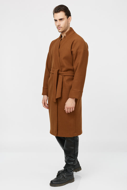 Palton maro tip kimono din amestec de lână