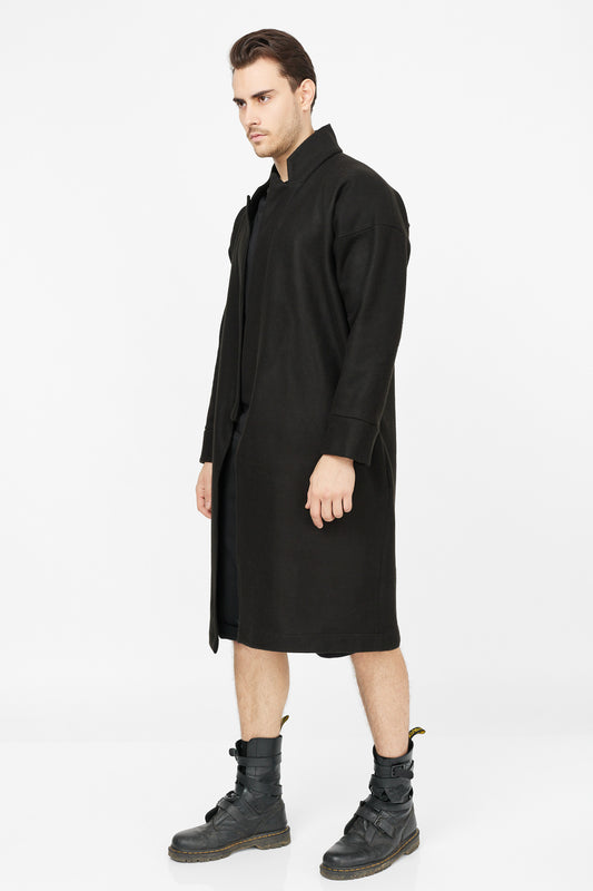 Palton negru tip kimono din amestec de lână