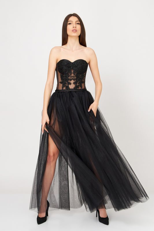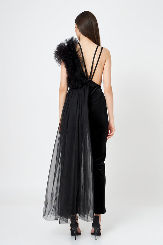 Tricou Oversized Negru Cu Deconstrucție De Tulle