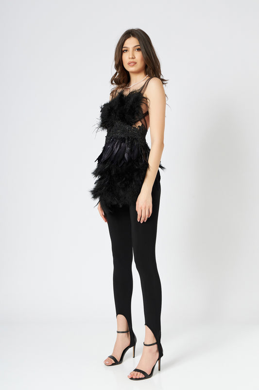 Body Cu Decolteu Adanc Și Volane Din Tulle